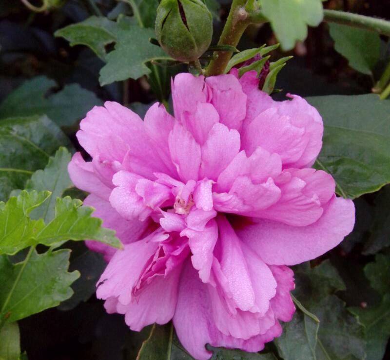 木槿花和木菊花一樣,是錦葵科木槿屬的落葉灌木,植株高在3-4米,葉片為三角狀卵形,花為鐘形,并且花量多,有豐富的顏色。
