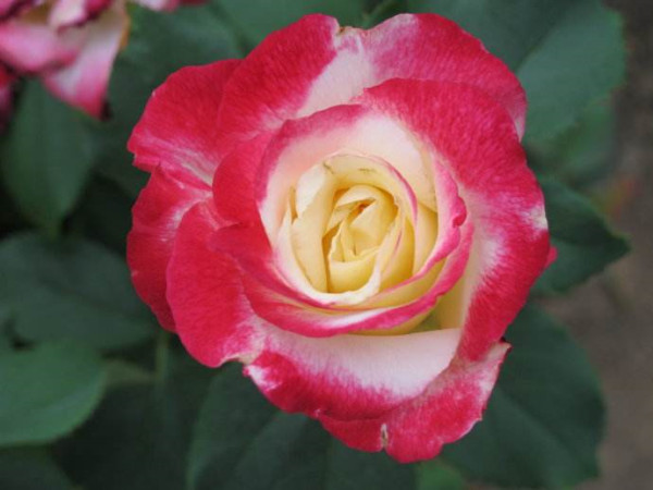 紅雙喜的名字還是相當有喜慶之感的,但其實這是一種比較仙兒的月季品種,外形特征最為獨特外層的花瓣是紅色的,鮮艷而奪目,而內層的心則是白色的,剛開始開花的時候這股白色是很小很淡的,等到花開得旺盛,白色蔓延出來,讓爭奪花都有了白色的暈染,極其壯美,而且,這個時候,花香也達到了巔峰,簡直是絕妙。