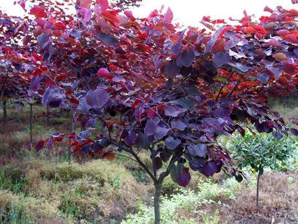 紅葉加拿大紫荊(也稱紫葉加拿大紫荊)屬落葉灌木,株高6--10米,冠幅8--12米。葉片心型,春、夏、秋三季葉色均為亮麗的紫紅色,嫩梢一直呈瑰麗的紅色。花苞紫紅色,花多,花期3--4月。適應(yīng)性強,較中國紫荊耐寒。在酸堿性土壤及干旱濕潤土壤都可生長。既可種于庭院、公園,又可種于路邊,是極佳的風景園林樹種。