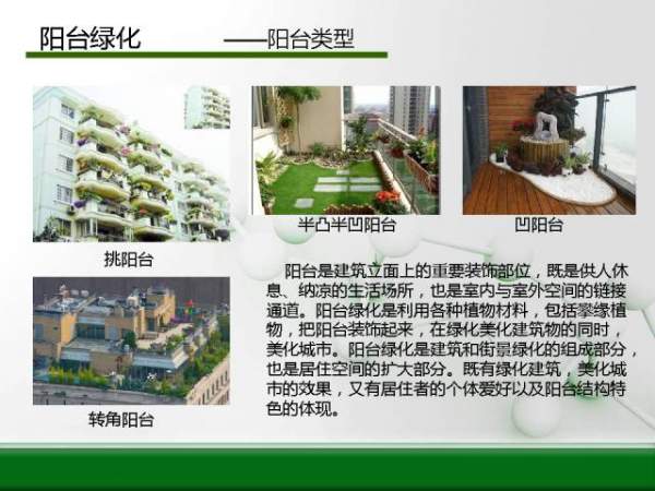 立體綠化是指除平面綠化以外的所有綠化,都稱為立體綠化,具有代表性的幾種綠化形式為:垂直綠化、屋頂綠化、陽臺綠化、墻體綠化、樹圍綠化、護坡綠 化、高架綠化等,有人也將立體綠化稱之為:建筑綠化,因為大部分立體綠化都運用在建筑上,而護坡綠化往往是用于堤壩防水,防止泥土流失的一種綠化方式。面 對城市飛速發展帶來寸土寸金的局面,而面對綠化面積不達標,空氣質量不理想,城市噪音無法隔離等難題,發展立體綠化將是綠化行業發展的大趨勢。小面我們來了解陽臺綠化的營造方式,用圖來代替小編的千言萬語。