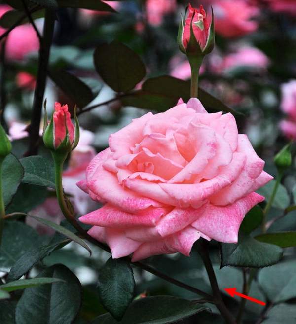 玫瑰的花枝上面都是長滿的刺,而月季花它的枝干上不帶刺,這個是它們間最大的區別;