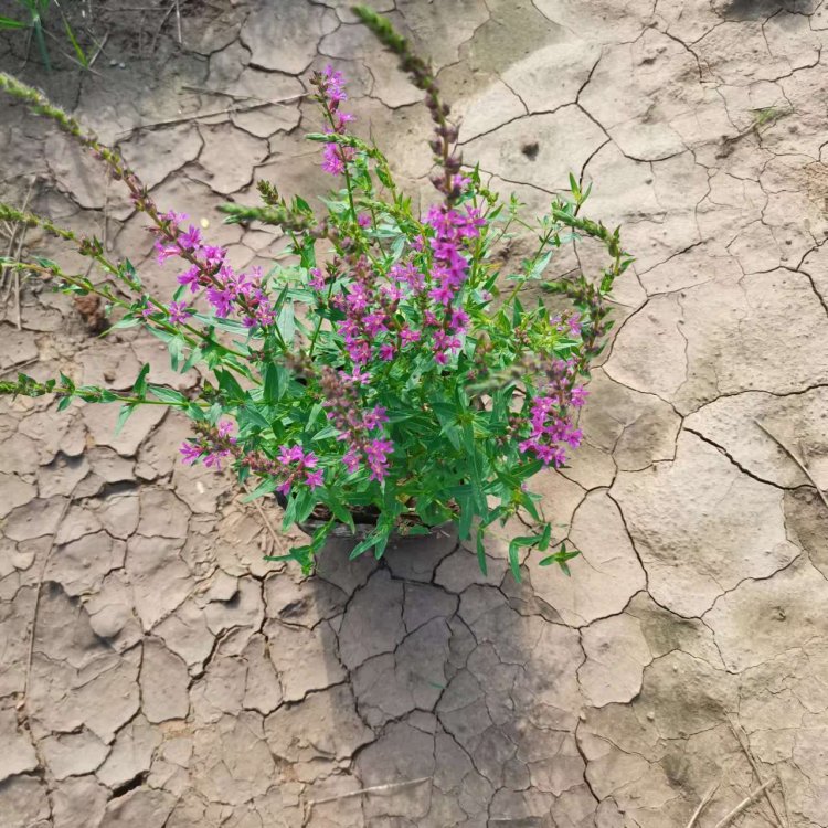 千屈菜又叫水枝柳、水柳、對葉蓮等,多年水生宿根草本植物,植株高約1米,直立生長,主桿上有許多分枝,葉子對生,披針形。葉子長4~6cm,寬1cm左右。總狀花絮長在最上面,長約30cm,花朵簇生。喜歡溫暖濕潤陽光充足的環境,在我國南方和北方地區都有野生的,生長在沼澤、湖畔、池塘等淺水地區。它耐寒性強,在山東、河南、北京等地均可自然越冬,霜降以后地面部分枯死,地下部分進入泥土休眠,在淺水的河邊和低洼潮濕的地方生長態勢最好,對土壤的要求不嚴。千屈菜的生命力極強,管理也可粗放,栽培的環境只要保證光照充足、通風良好即可,在生長期要經常打頂促使其矮化分蘗,長出豐滿茂密的株型。